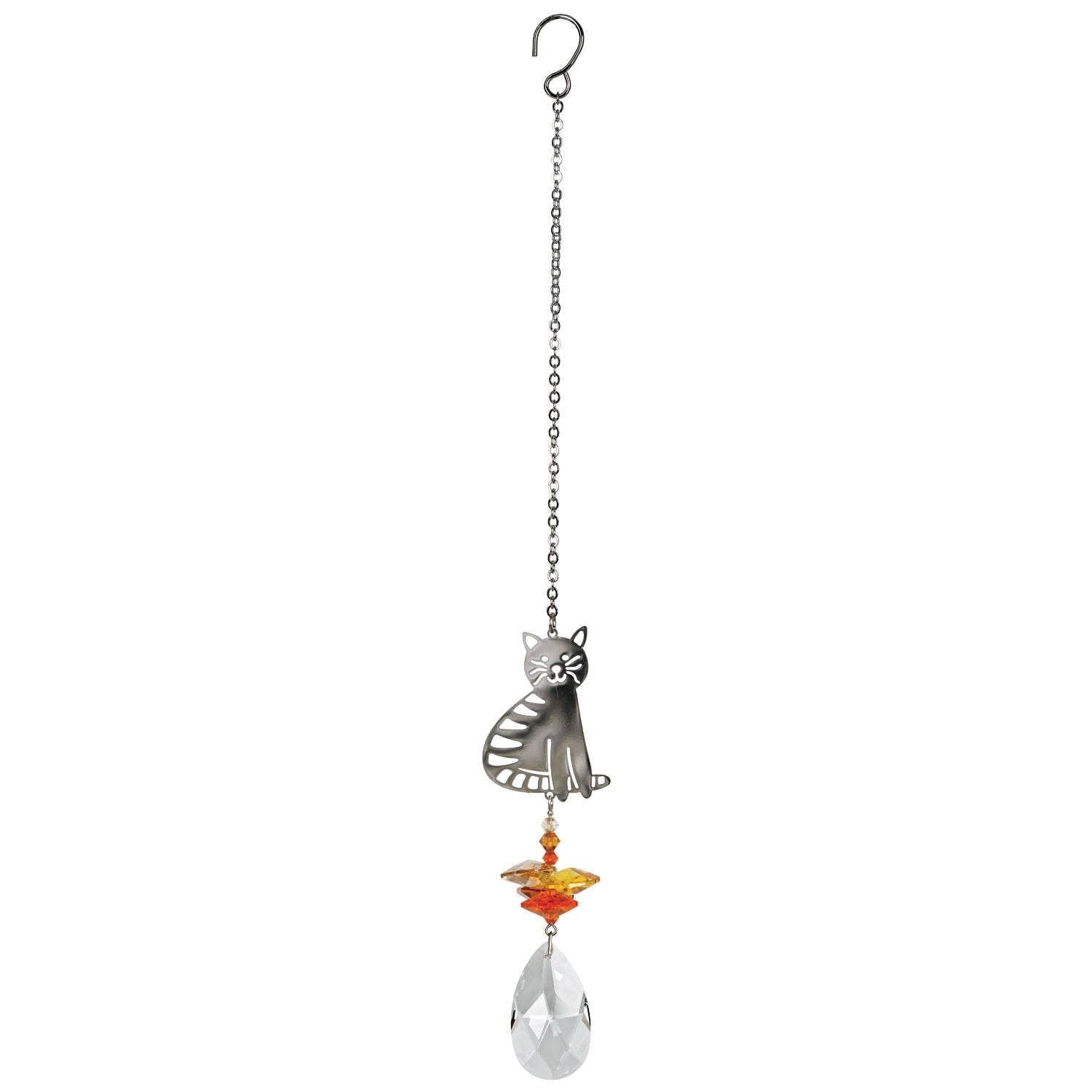 This kitty cat's stripes go down her back and continue all the way to the tip of her tail. Cats often represent mystery, the supernatural and watchfulness, but this pussy-cat seems open and friendly. This cat tops a cluster of crystals that sparkle and shine in the sun. What better gift for your favorite "crazy cat lady"!