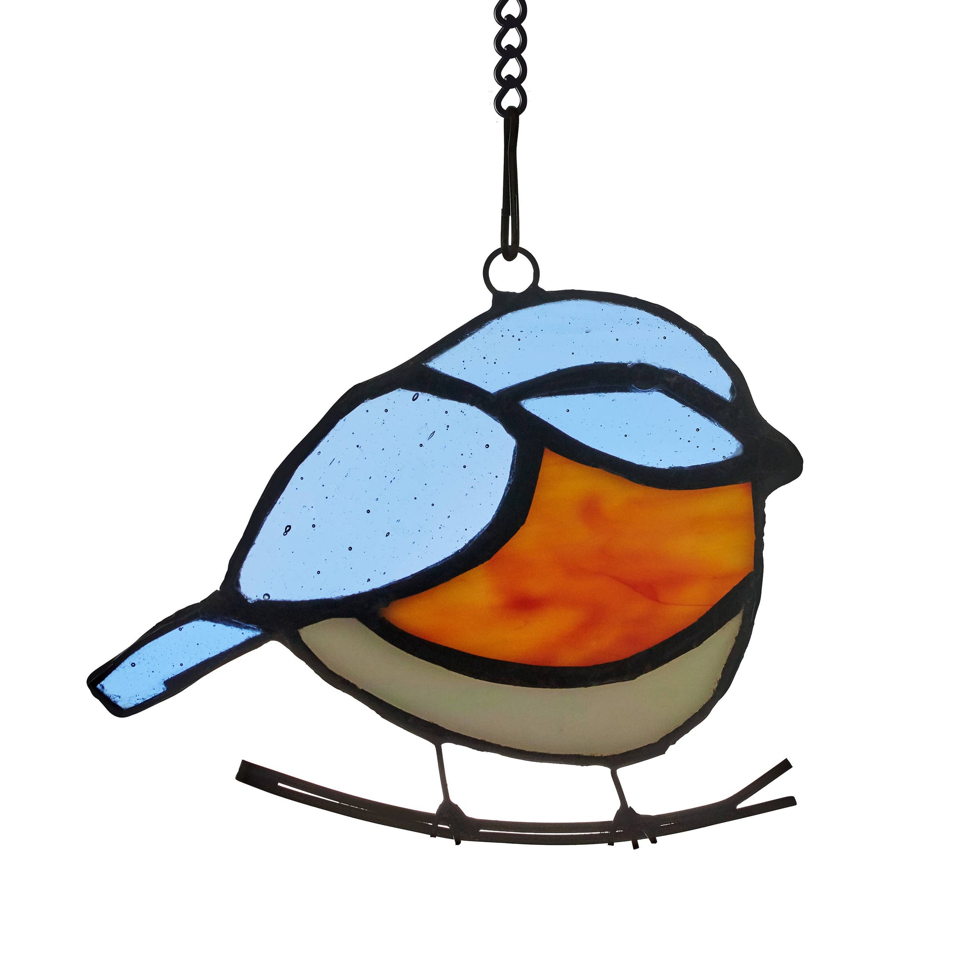 Infuse a touch of the outdoors into your living space with this enchanting stained glass window panel. The nature-themed imagery beautifully captures the essence of the cabin and lodge style, bringing a sense of tranquility to your home. Handcrafted with vibrant blue colored stained glass, this bird-shaped panel adds charm to any window. The included metal chain makes for easy and secure hanging, while its stunning display comes to life when illuminated by sunlight. Keep your panel looking pristine with a little lemon oil for easy care and effortless maintenance. Features vibrant stained glass Includes 10" metal chain for hanging. Clean with lemon oil polish for long-lasting shine, Tiffany-style craftsmanship. Perfect for all seasons. Indoor use only.